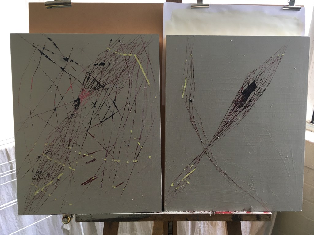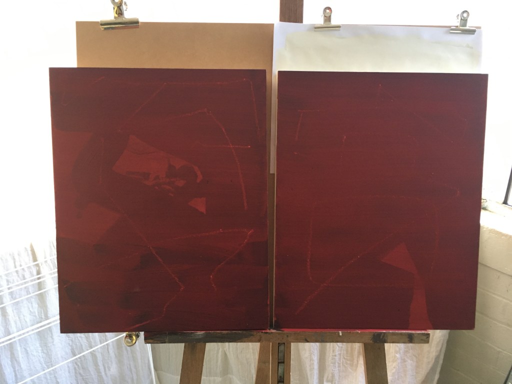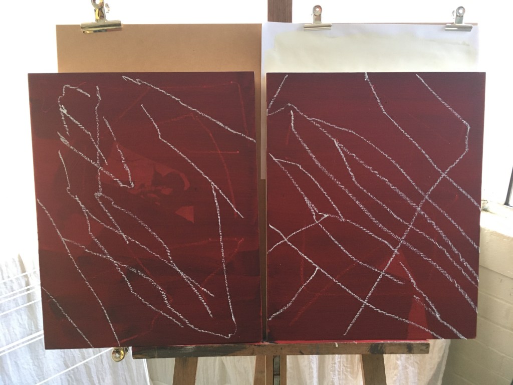 The issue with the diptych ‘under the surface’ for me is the recognisable forms. It was meant to be more of a conceptual piece without any figurative cues but I kind of got carried away and could see the lines following a familiar form. I am not overly disappointed with it because it would still make sense in a body of work. Yet it doesn’t surprise me, though I think I will just leave it be, because form is something I do anyway. The funny thing is my friend just found a whole pile of boards on the street that someone had thrown out so I can get stuck into some new work pretty quickly. The other problem is now I want more figuration in these pieces. I would literally love to do a scratched portrait or actual human figure rather than a mark or abstract form. At the same time I liked the ‘fake archive: triptych’ because it wasn’t built on familiar forms. At least not forms common to art. More stains or marks on walls. That to me is interesting, yet I have to have some kind of range so even though I am a little disappointed (just a little bit) I can accept that things will be at times familiar to other work I have made.