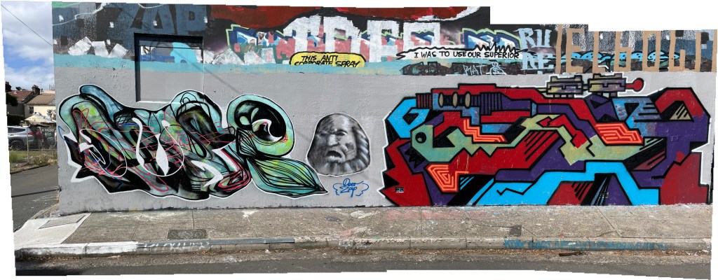 Over the years I have been inspired by many artists. Some well known and some obscure. There are too many to name because everything you see at some stage has an effect. I remember seeing a show by Newell Harry in 2008 that inspired my interest in line work. The show was quite diverse but there were some sculptural works that were weaved together and so I tried in some of my aerosol work to create forms through line work that were weaving through each other to create letterforms. Also, I was having a conversation with Michael Petchkovsky at one of his first Masters of research shows at Sydney university about an electronic sculpture in 2013. I mentioned that the work looked complex. He explained that the individual circuits were actually simple but the way they were repeated created complexity. This was a real eye-opener for me as I realised that my own work, which is quite simple could become complex with repetitive linework. Seeing drawing work by schizophrenic patients also made me want to explore line as it was a representation of energy. Psychic energy and dreams seem to be what I was seeing in the patients work. My own work at times is described as electric. Funnily enough, I get emails about electronics all of the time. It’s like an interest I never explore practically but create visual work about. In the early nineties, I became interested in repetition through shapes. I would repeat shapes to create complexity but I find that line work has a more disorienting effect that I prefer. Some people described my nineties work as musical or sonic. Also, I want to create an organic form which is why I lost interest in simple shapes. I never really developed the shape works but there were a couple of interesting works from that period. I think the most important point is repetition. The creation of an illusion of energy and other forms.
