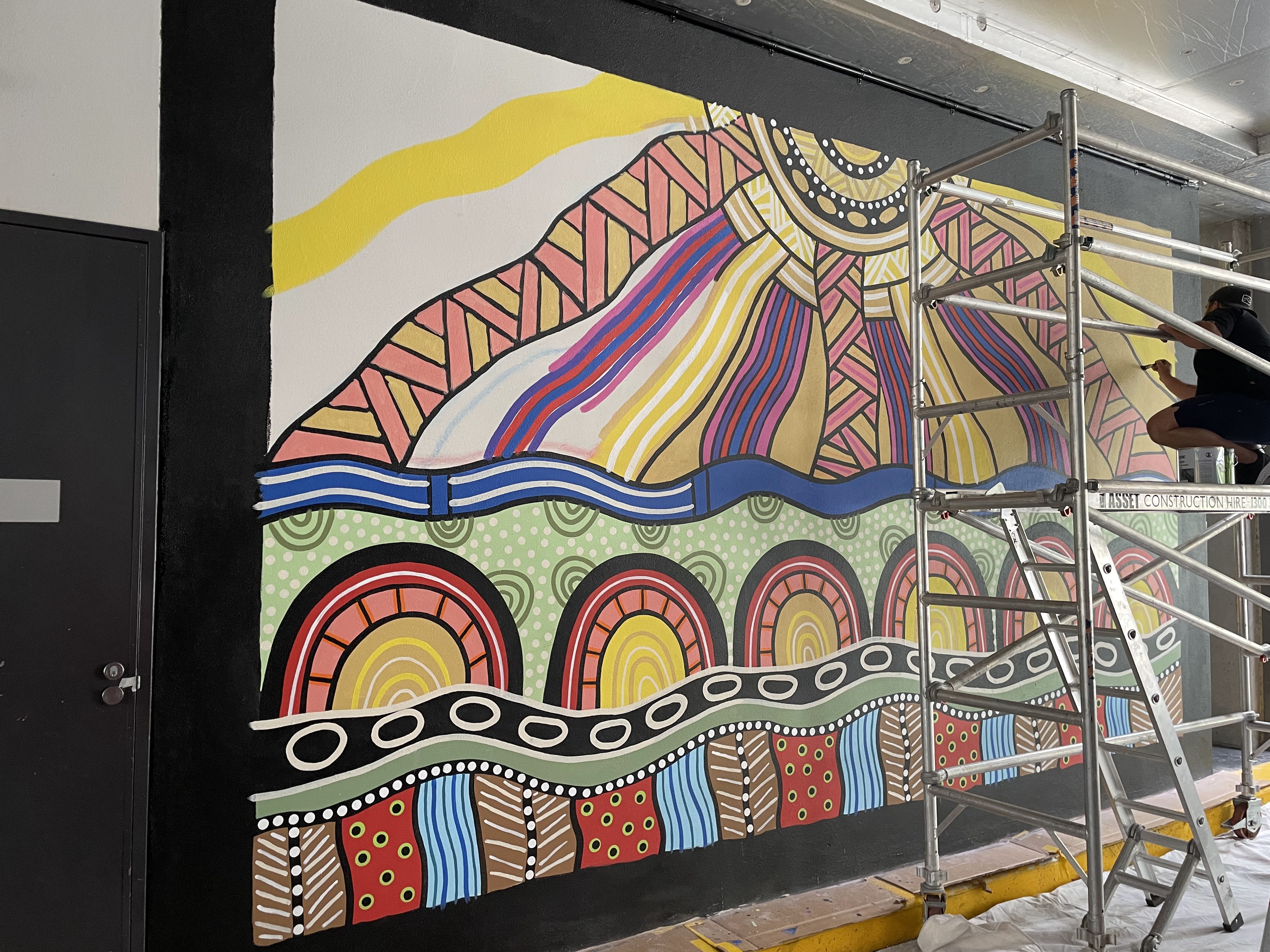 There was the Surface Festival in Canberra that the company I work for was a major sponsor of and we headed down on Thursday to give away merchandise and speak to the artists. There was a short talk on Saturday in the afternoon to a small band of curious artists who wanted to know a little more about the Resene brand. We had a small team from Melbourne and Sydney with one of the Sydney team getting stuck in floods in Northern New South Wales which have been badly flooded. None of us knew our way around Canberra very well and it wasn’t until our last night there that we had a better understanding of the place. It was quite an interesting event with major walls being painted with exciting murals. It seems most of the art was centred around the newly developed area of Braddon with its blank apartment walls becoming centrepieces. There are many hip bars and places to eat in Braddon that attract a lot of people looking for a night out on the town. This attractive part of Canberra with its blank walls brought in young and old drinking, tagging, eating and some of the most graffitied walls have been taken over by some of the biggest names in graffiti from the capital of Australia. Other walls are entertaining stencils, indigenous art and big-name street artists up and coming and established. There was a little bit of downtime and I went to the National Gallery and saw a lot of Indigenous artwork old and new. There was a major Australian artist show on but I got caught up in the main collection and was happy to take in all of the collection I could. The artist who had the major show has had a few major shows over the decades and I have seen some in the past. What I enjoy about Indigenous art is the world of spirits that dwell in this country being depicted as most Europeans don’t have any interest in these types of things being anything other than superstition.